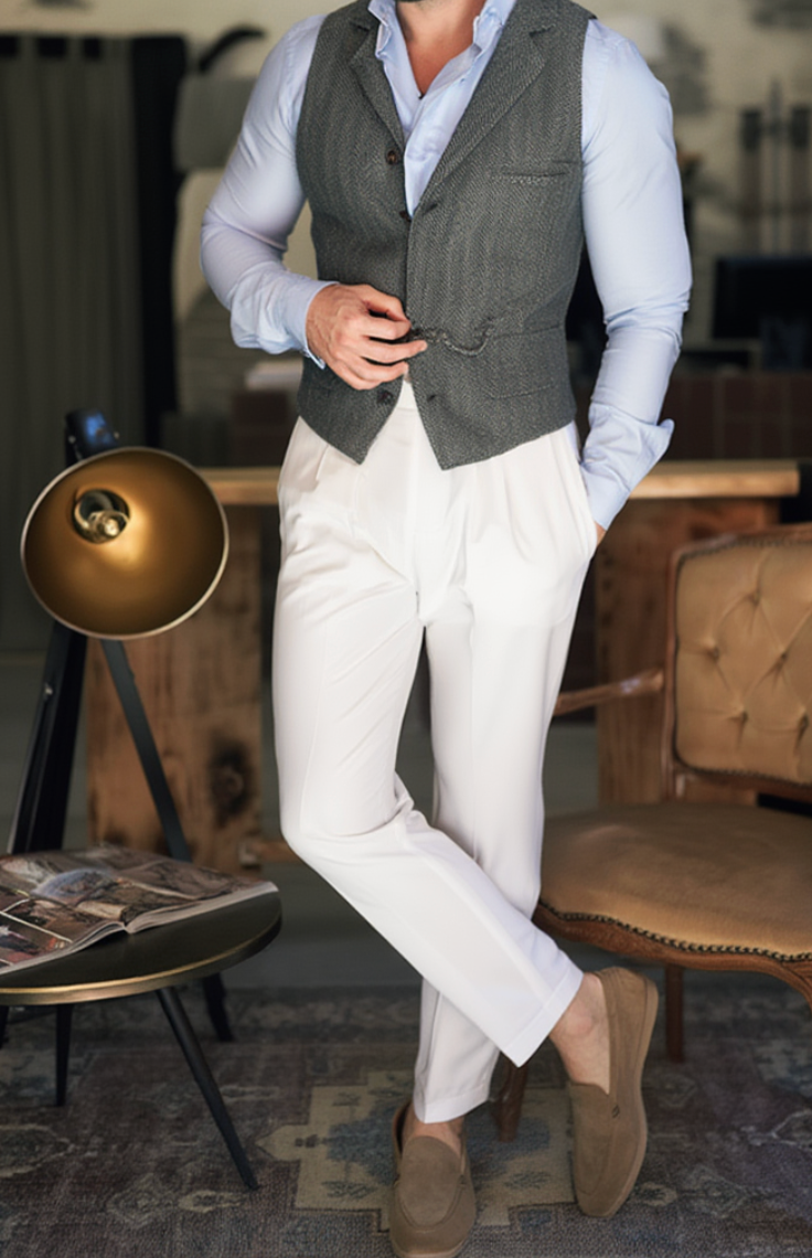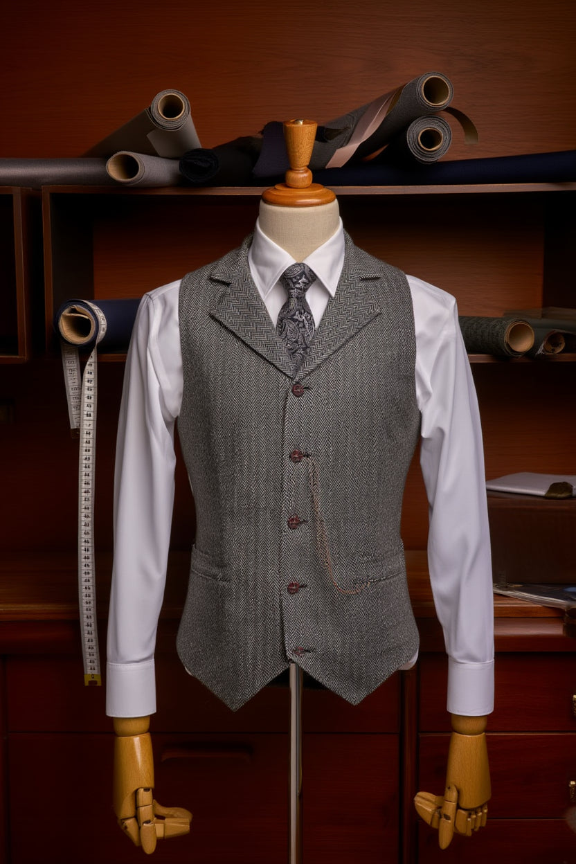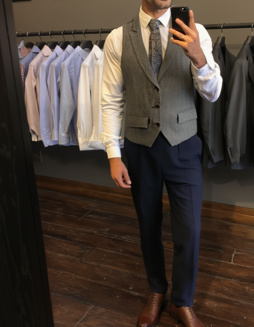 Chaque gilet Beaumont est ajusté selon des standards précis pour garantir une coupe flatteuse et équilibrée.